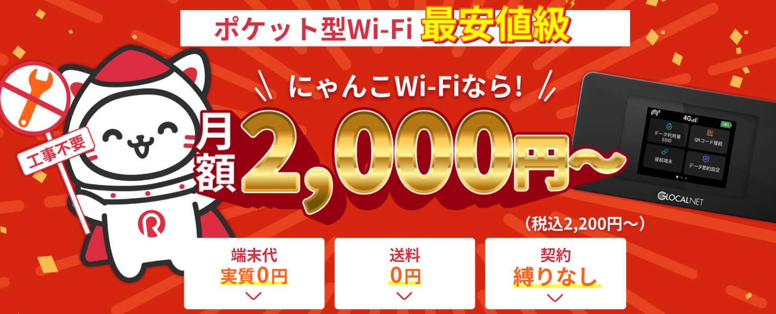 通信環境をもっと快適にしたい方は、ぜひ一度「にゃんこWi-Fi」を試してみてください。