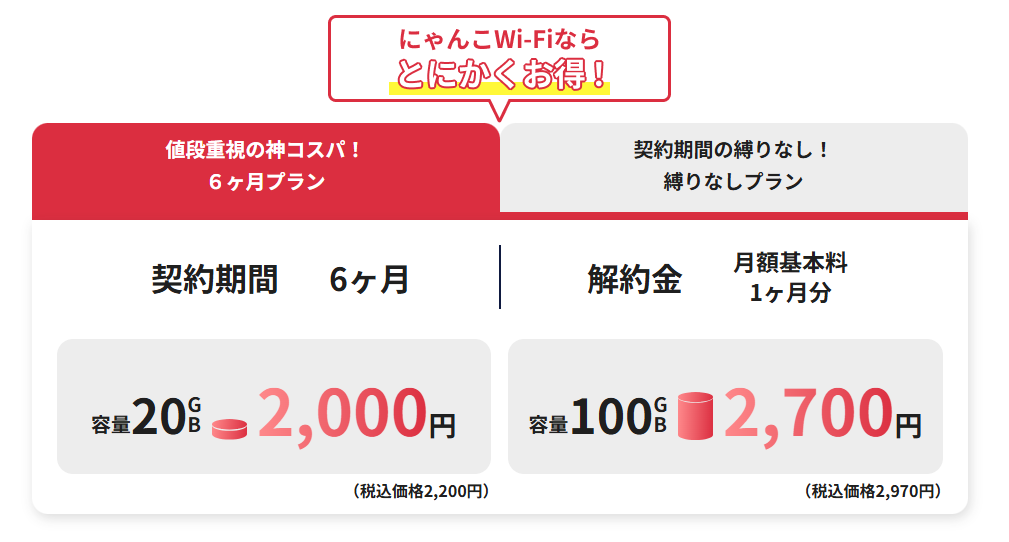 多くのモバイルWi-Fiは2年〜3年契約が前提ですが、にゃんこWi-Fiは縛りなし。