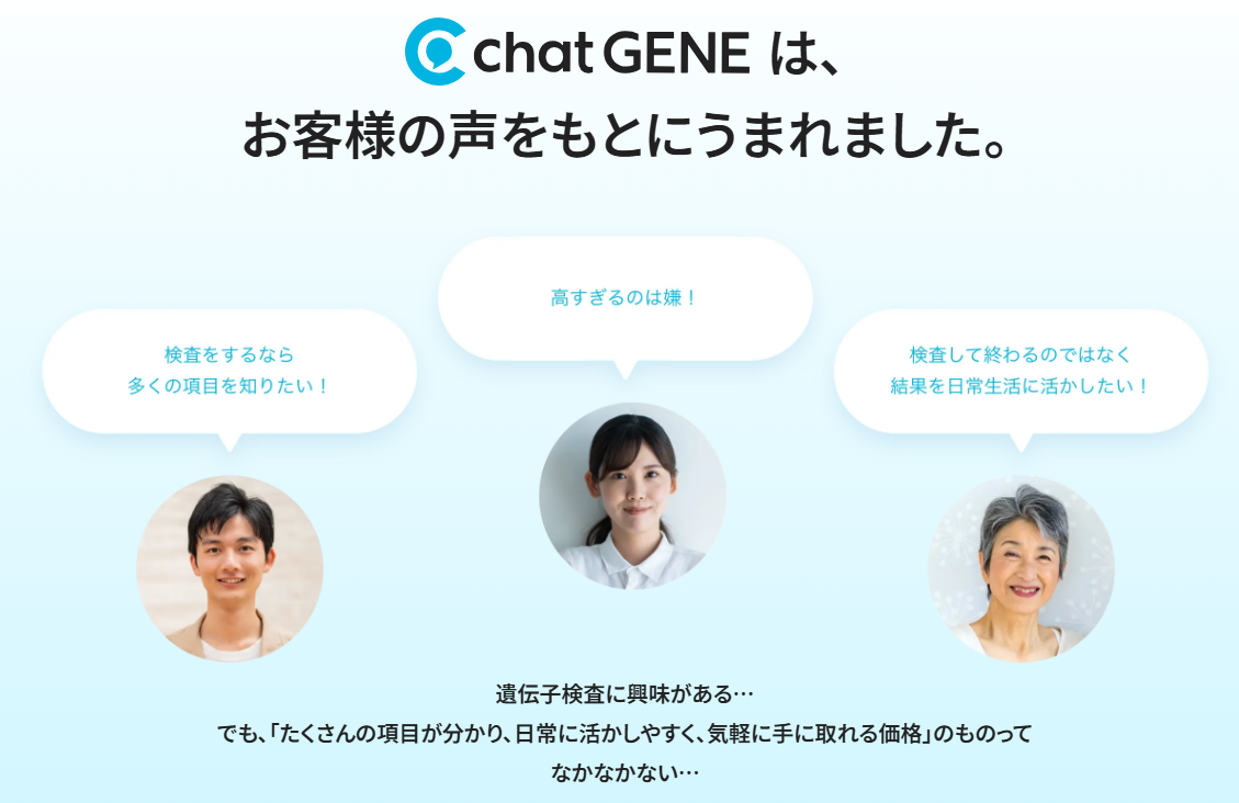 遺伝子検査というと「医療や生物学の知識が必要」と思われがちですが、chatGENE Proは違います。