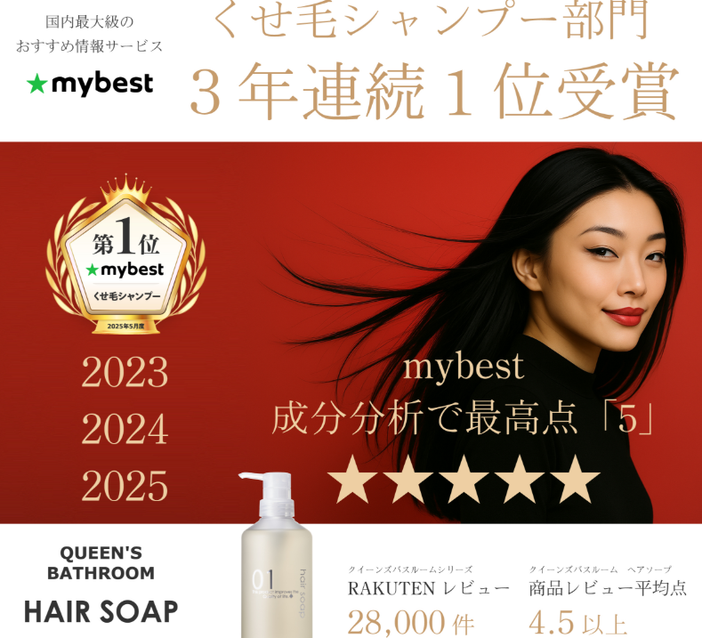 クイーンズバスルームは、こうしたエイジング毛にも対応する処方で、大人の髪の悩みに寄り添います。