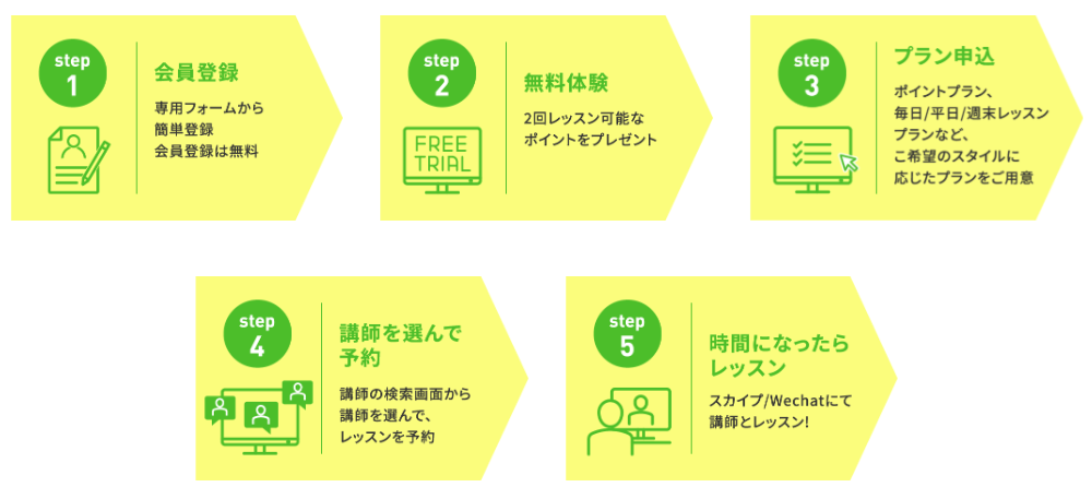 最大の特徴は、中国人講師による質の高いマンツーマン指導が受けられる点です。オンラインでありながら、対面のように細かい発音の癖や文法の弱点までしっかり指摘してくれるため、効率よく正しい中国語が身につきます。また、レッスンは朝から深夜まで幅広い時間帯に対応しているため、仕事前や家事の合間など、自分の生活ペースに合わせて受講可能です。