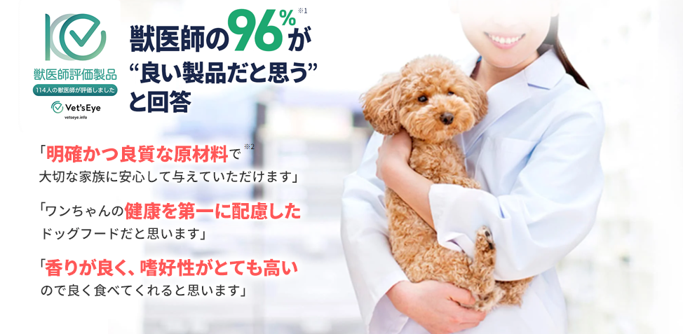 皮膚トラブルが多い犬や、食べ物の影響を受けやすい犬でも安心して食べられると高く評価されています。日々の便の状態に悩んでいる飼い主にも選ばれています。