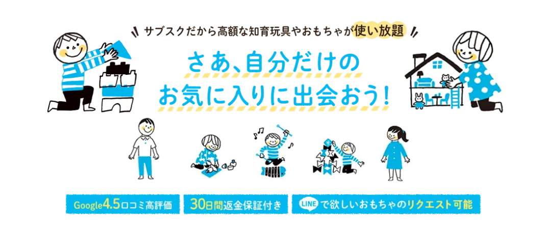 - 毎月または隔月で知育玩具が届くサブスク形式
