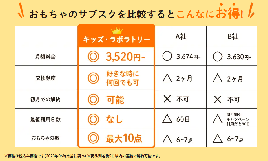 この仕組みにより、常に新鮮で発達に合った知育玩具を取り入れつつ、おもちゃの無駄を減らすことができます。