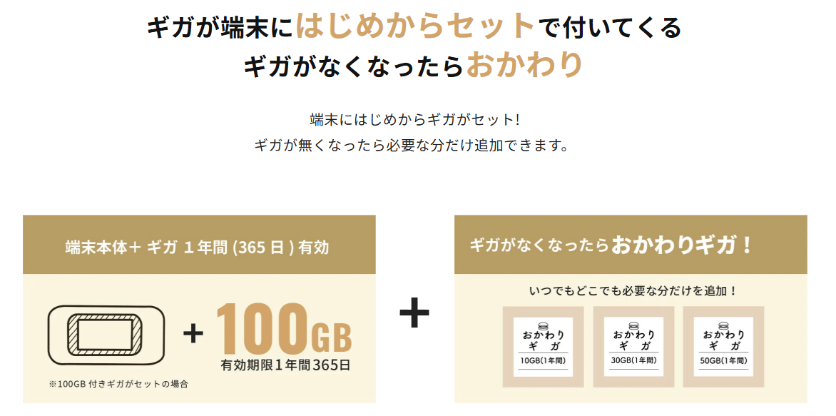 ギガセットWiFiは、端末とデータ容量(ギガ)を最初にまとめて購入する「買い切り型」のモバイルWi-Fiサービスです。