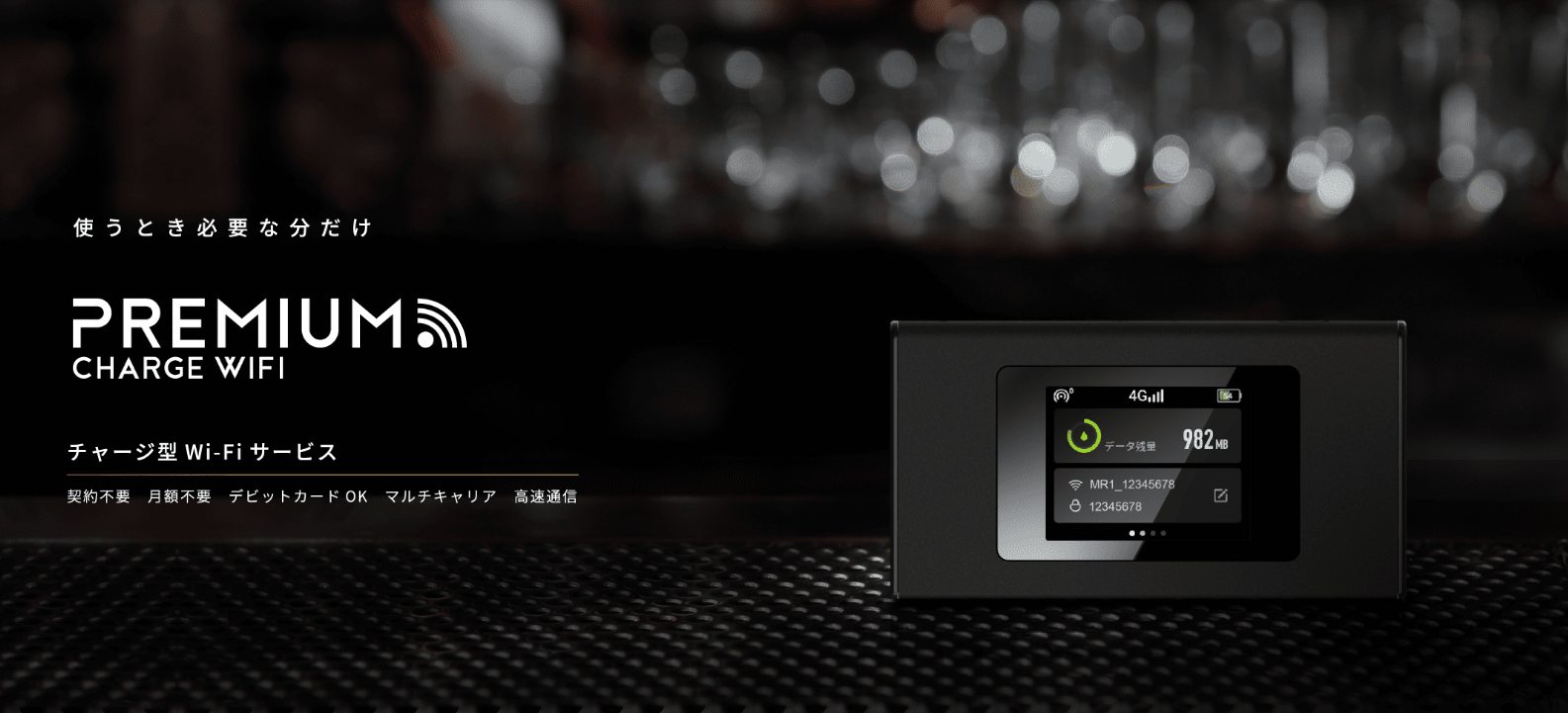 プレミアムチャージWiFiは、端末と通信データ(ギガ)をセットで購入する、プリペイド式のポケットWi-Fiサービスです。