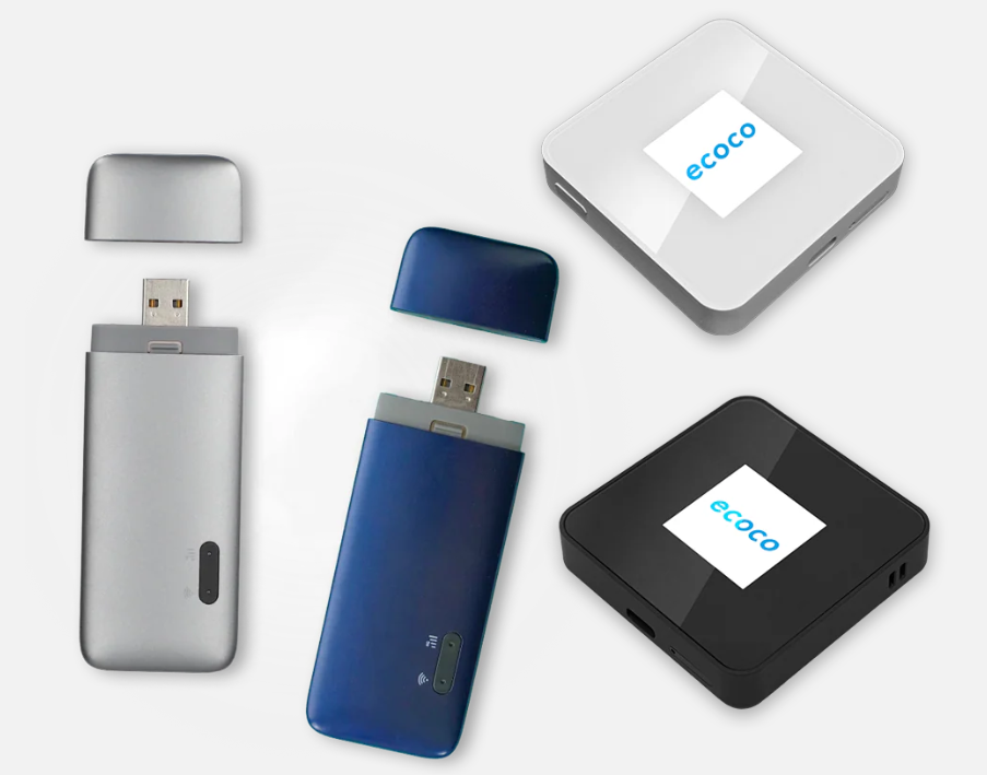 ecocoは、USBスティック型のWi-Fi端末です。最大の特徴は、一般的なWi-Fiルーターのように回線契約をする必要が一切ないことです。